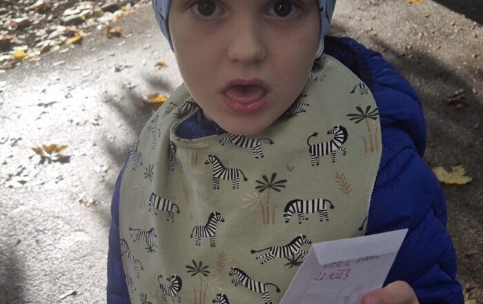 S Skladom Viljem Julijan smo Rosinim staršem zanjo podarili donacijo v višini 2.000€, da bosta lahko deklici nudila to, kar potrebuje v boju z boleznijo.💛