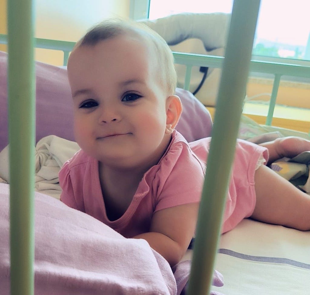 Hanna, 1 leto – makrocefalija zaradi mutacije na genu SPTBN